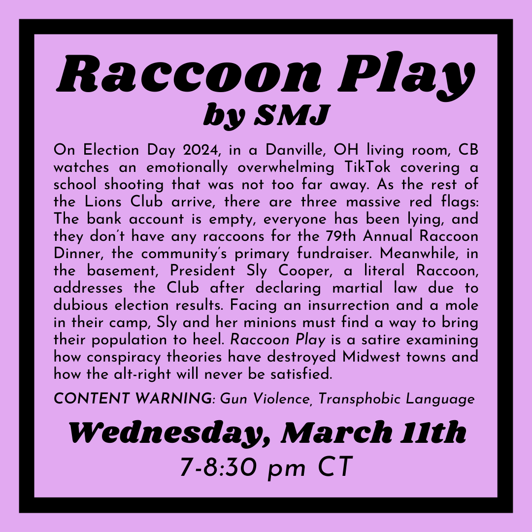 In October of 2020, craving conversations about plays but burnt out from Zoom readings, Red Theater began hosting our monthly Script Club. Open to all lovers of theatrical literature, we meet virtually to discuss a play we've collectively read beforehand, curated by Cohort Member Zach Barr. The conversation is casual, covering topics including theme, production elements, and opinion. The plays vary from new scripts by active playwrights to stand-outs in the ever-expanding “canon.” On occasion, the playwright is able to join us for the conversation. It’s a great time.